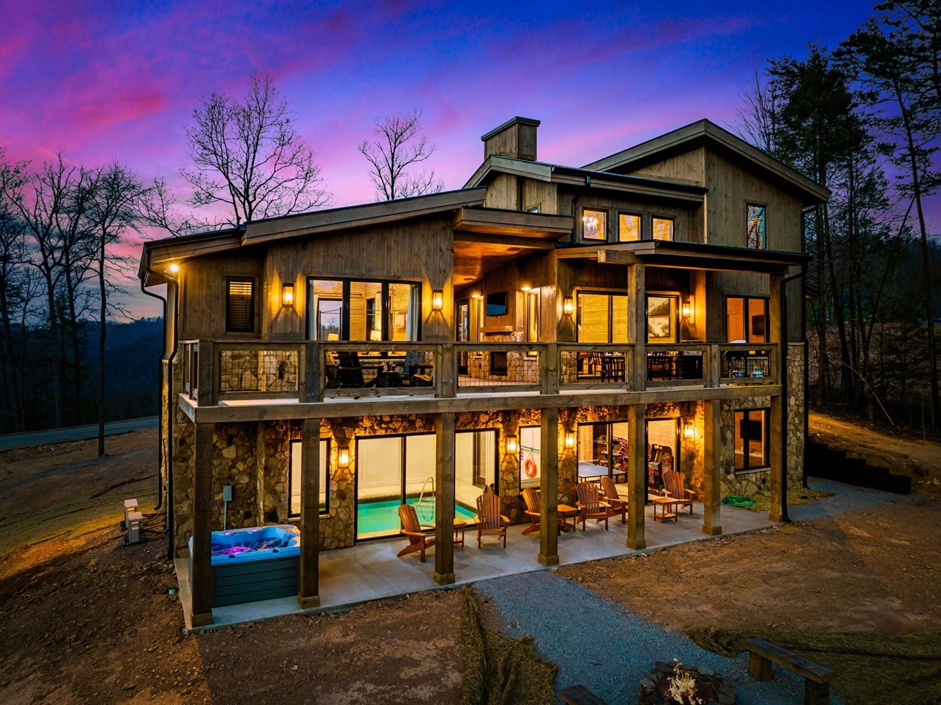 On The Rocks New MODERN Custom Built Indoor Pool Lodge w/Sauna🔥Fire Pit🔥Movie Theater⛳
