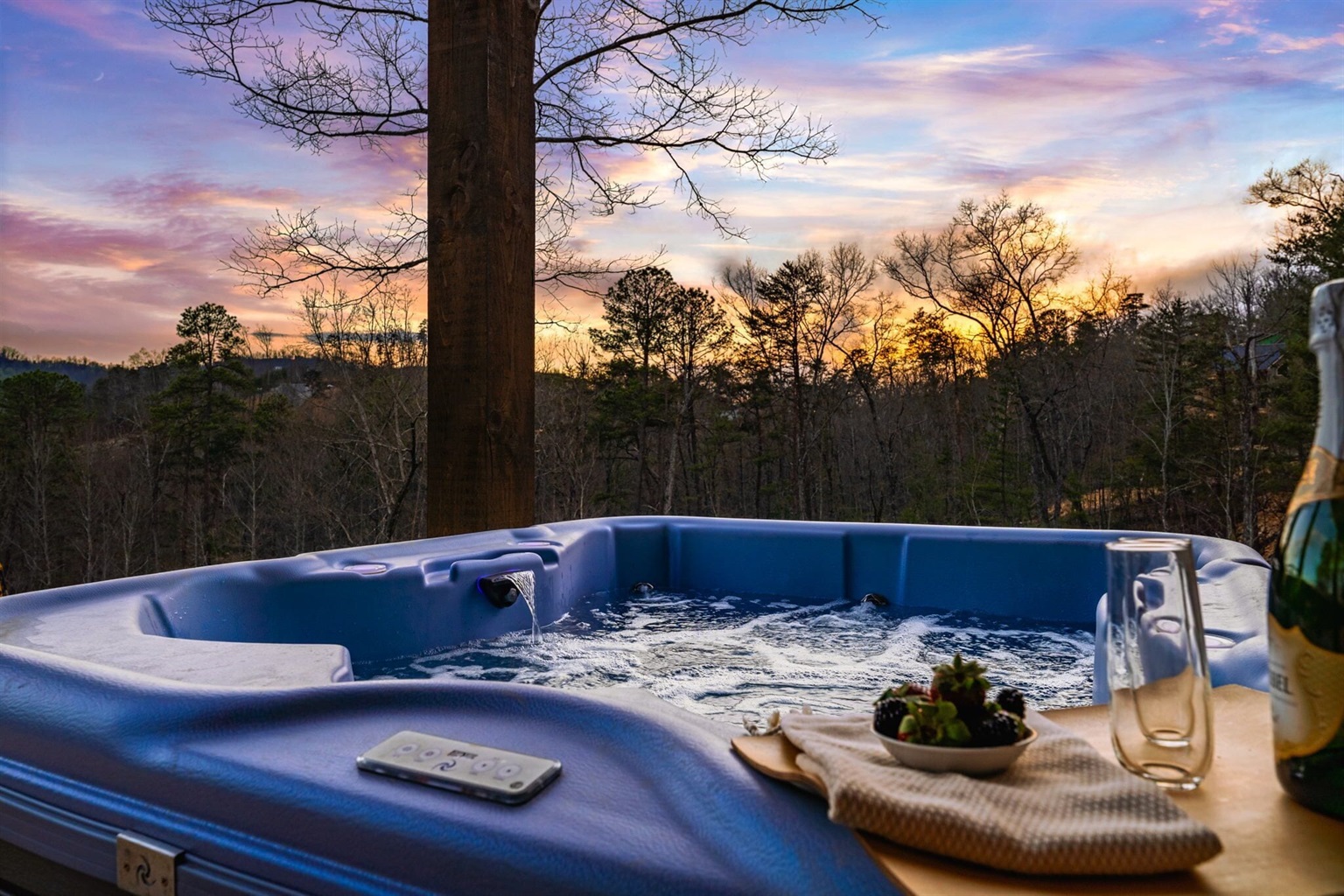 7. Is the hot tub cleaned after every stay? – Yes! Our hot tub is drained, cleaned, and refilled for every stay.