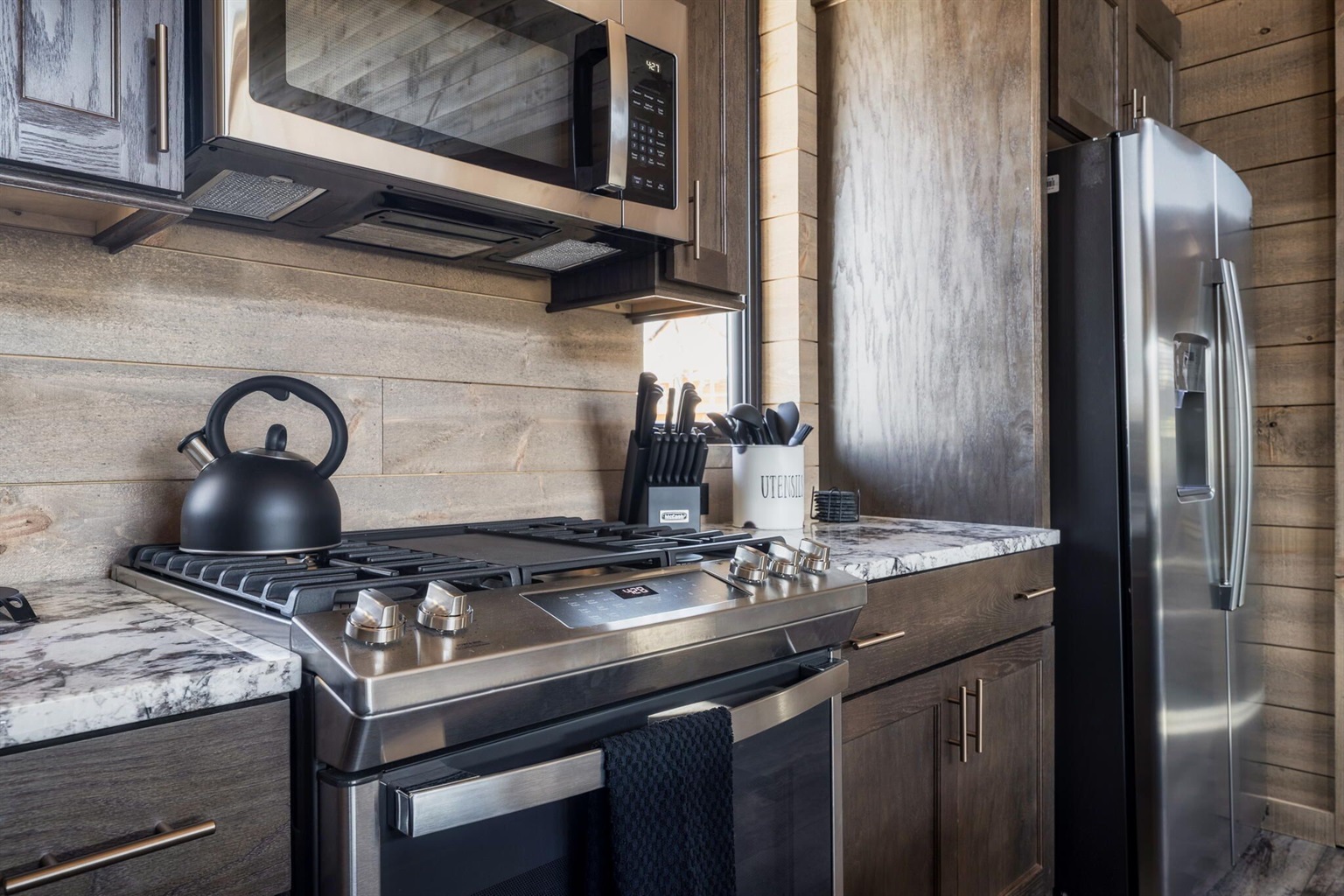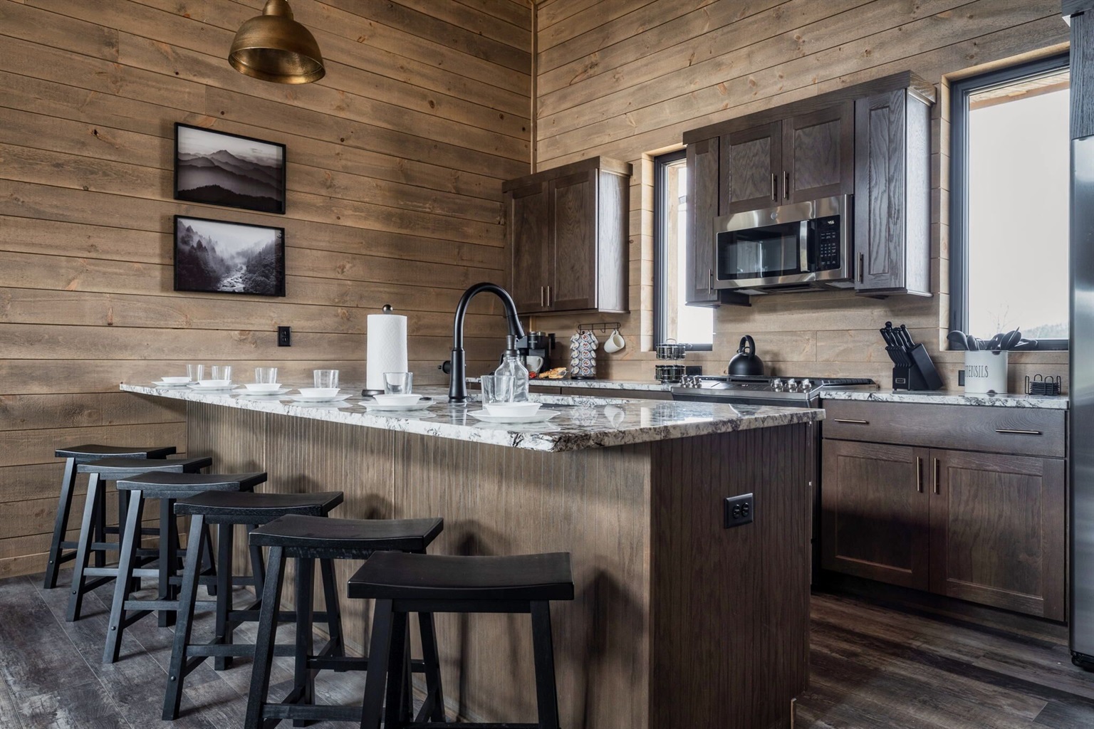 Our kitchen is FULLY STOCKED with everything from wine glasses to waffle makers and everything in between! We love preparing food in our family and wanted to ensure our guests had every available opportunity to make world class meals in our kitchen!