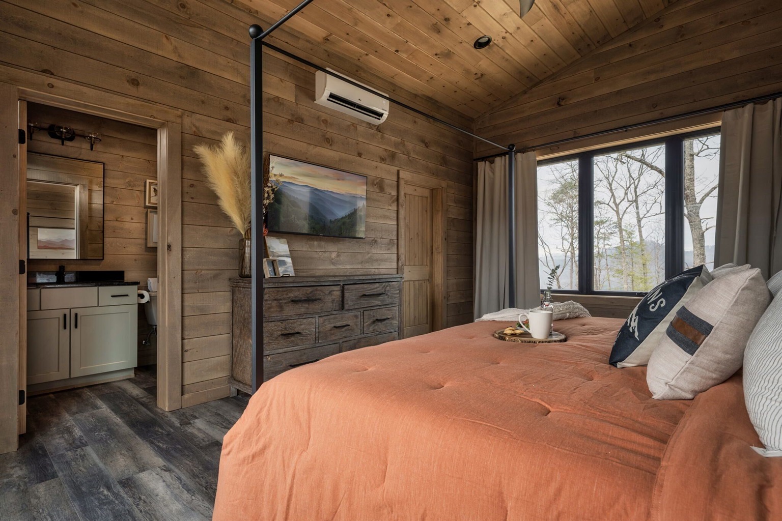- The Master Bedroom is detached from the main cabin by a breezeway for complete privacy and seclusion. We absolutely love it, but it is different than most homes!