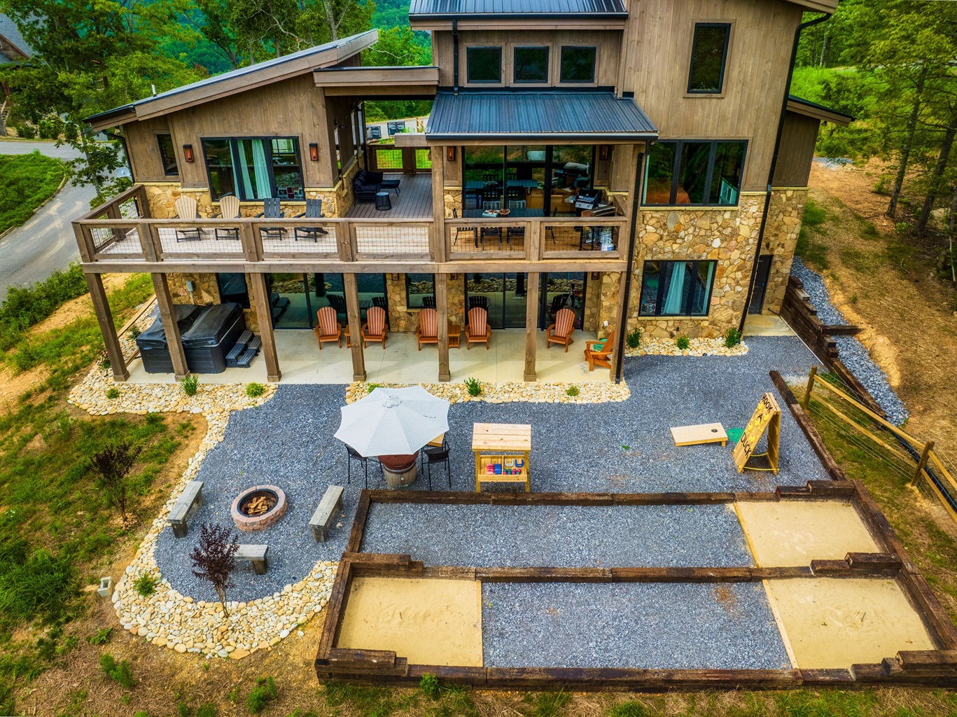 Let the kids enjoy the 12'x14' INDOOR POOL on the first floor while the adults sit outside in the HOT TUB or relax on the Adirondack chairs. The large flat area next to the hot tub is perfect for enjoying a game of CORN HOLE or MEGA JENGA! There's a SAUNA right next to the pool because...well...this is vacation!